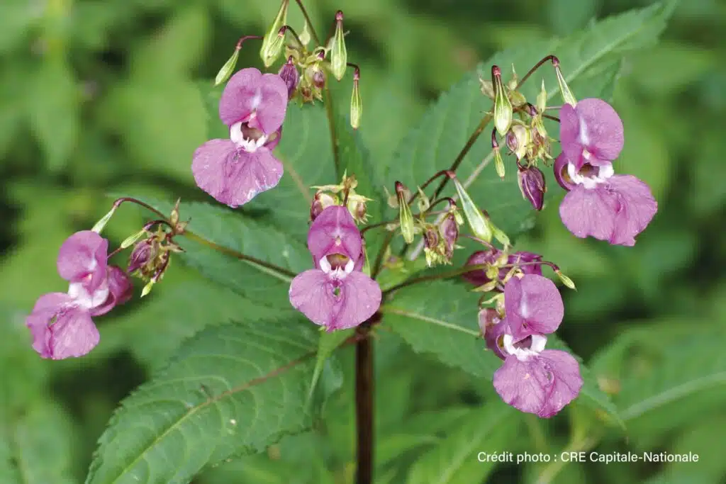 - Impact écologique : L’impatiente glanduleuse est particulièrement envahissante dans les milieux aquatiques et semi-aquatiques, où elle étouffe la végétation indigène et modifie les écosystèmes en limitant la diversité des plantes locales.